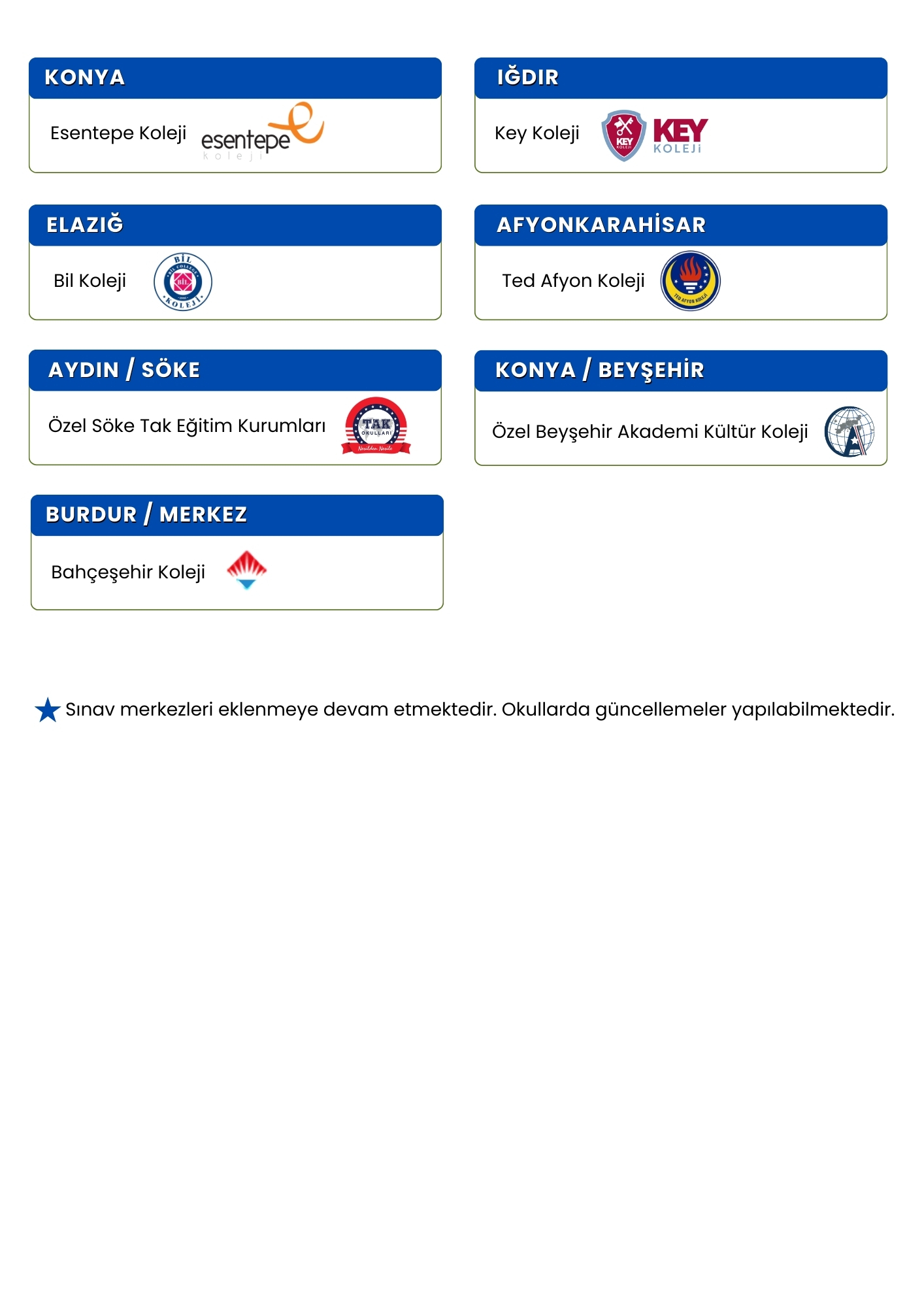 SASMO 2026 – Bireysel Sınav Merkezleri